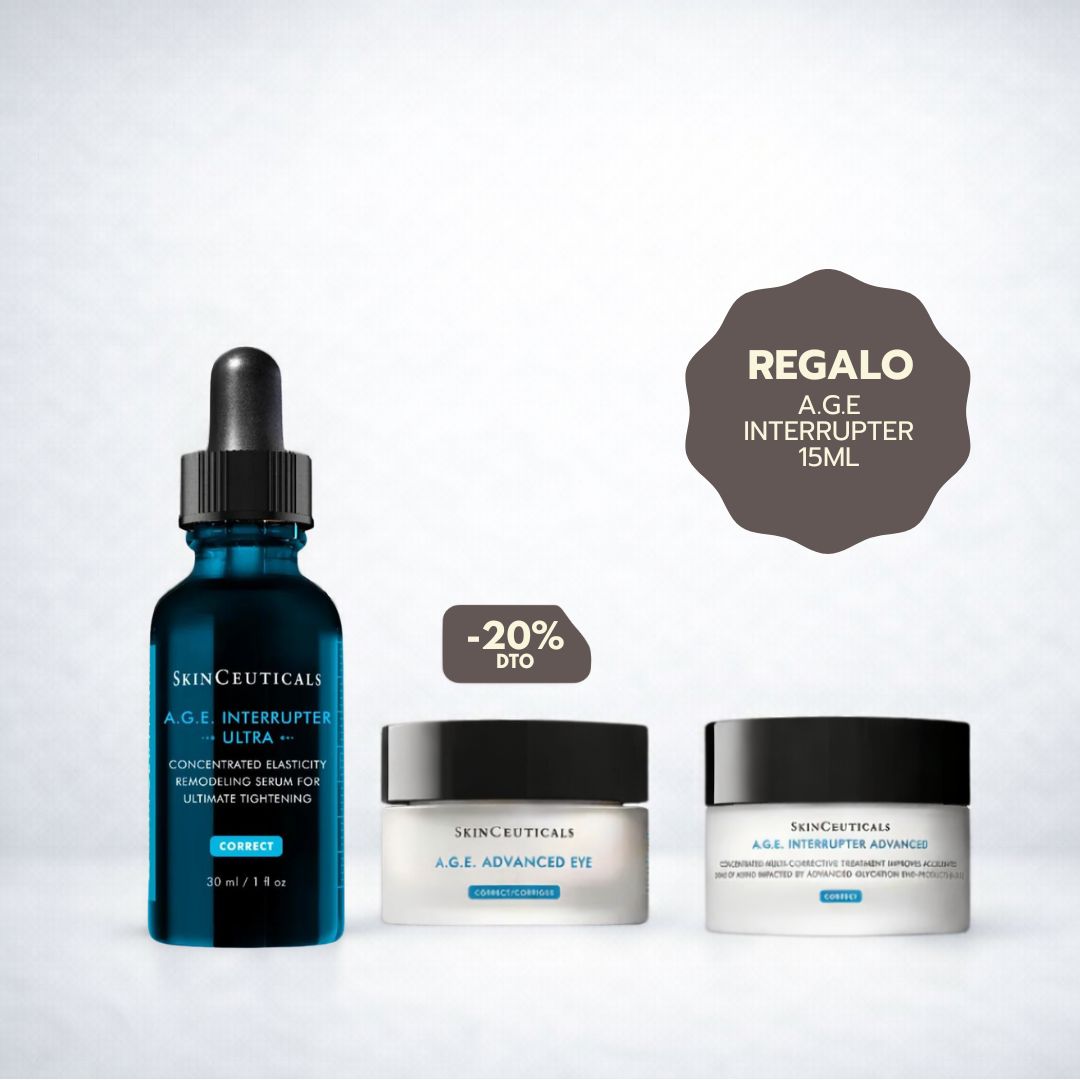 Aprovecha esta oferta única: el A.G.E. Advanced Eye viene con un 20 % de descuento, y además recibirás de regalo la crema A.G.E. Interrupter de 15 ml, valorada en 61 €, al adquirir el potente A.G.E. Interrupter Serum.