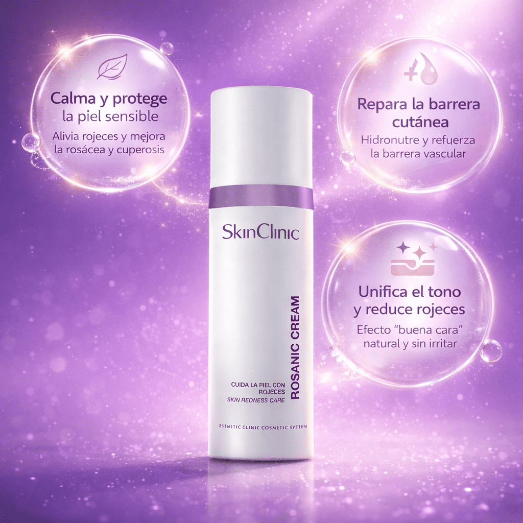 Las pieles sensibles con tendencia al enrojecimiento tienen una barrera cutánea comprometida y microcapilares frágiles; Rosanic Cream actúa en varios frentes: fortalece la pared capilar, calma la inflamación superficial y repara la barrera lipídica para reducir la recurrencia de las rojeces y mejorar la textura y confort de la piel.